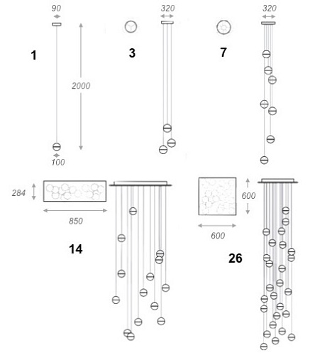 Характеристики Светильник Bocci 14.1 Single Bubbles Led Crystal Glass 1 Ball Imperiumloft 85101-22