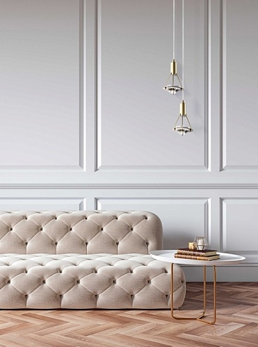 Металлическое основание подвеса гальванизировано в цвет золота. Светильник декорирован прозрачным хрусталем в форме бриллианта.