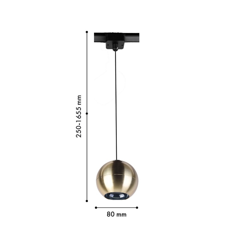светильник для трековой системы в виде подвеса в латунном цвете, с модулем LED, 36° угол рассеивания.