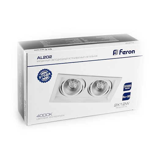 Характеристики Светодиодный светильник Feron AL202 карданный 2x12W 4000K 35 градусов ,белый