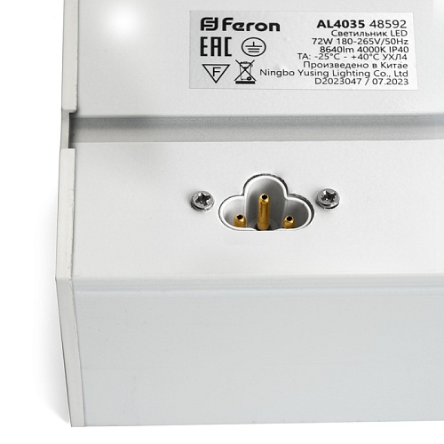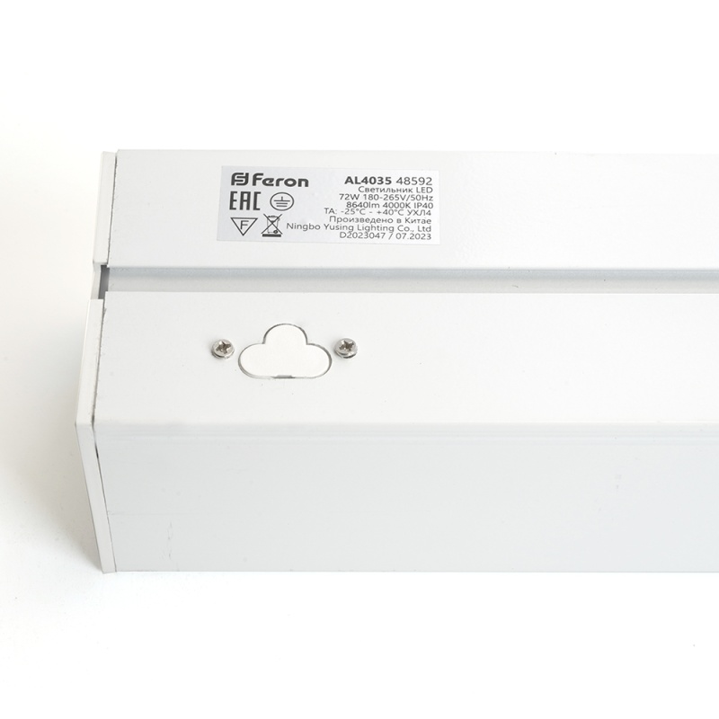 Характеристики Светильник светодиодный линейный Feron AL4035 IP40 36W 6500К, рассеиватель матовый в алюминиевом корпусе, белый 1180*70*55мм