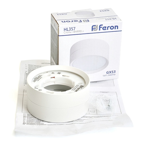 Характеристики Светильник потолочный Feron HL357 12W, 230V, GX53, белый