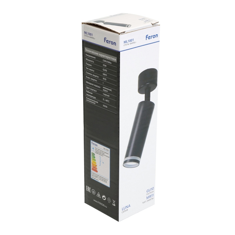 Характеристики Светильник Feron ML1001 LUNA настенно-потолочный под лампу GU10, черный