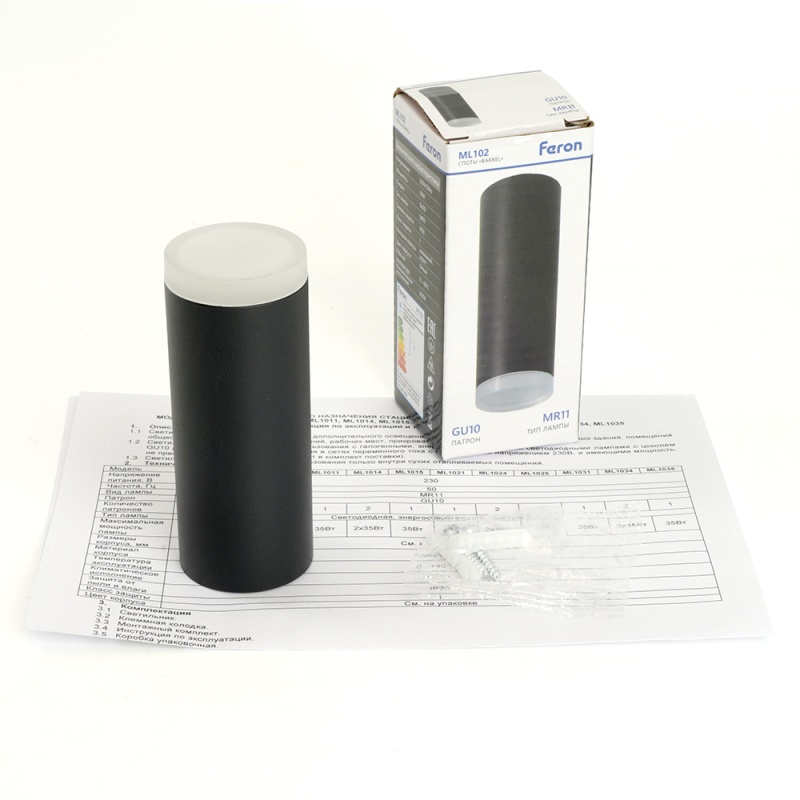 Характеристики Светильник потолочный Feron ML102 Barrel MR11 GU10 35W 230V, черный