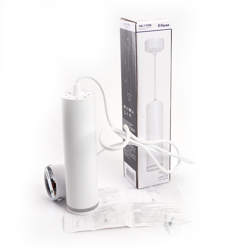 Светильник потолочный Feron ML1708 Barrel LUNA на подвесе MR16 35W 230V, белый 55*200 48081