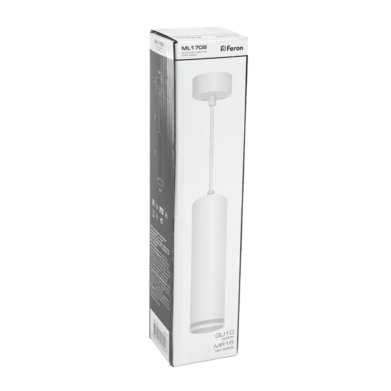 Характеристики Светильник потолочный Feron ML1708 Barrel LUNA на подвесе MR16 35W 230V, белый 55*200