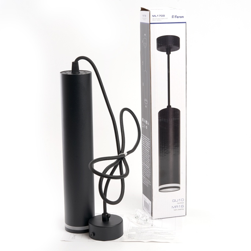 Характеристики Светильник потолочный Feron ML1708 Barrel LUNA на подвесе MR16 35W 230V, черный 55*280