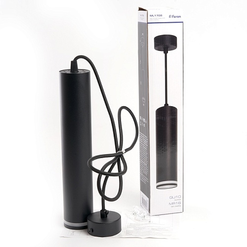 Отзывы о Светильник потолочный Feron ML1708 Barrel LUNA на подвесе MR16 35W 230V, черный 55*280