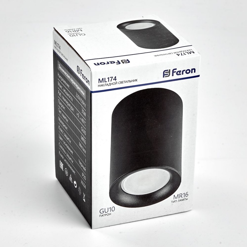 Характеристики Светильник потолочный Feron ML174 MR16 GU10 35W 230V, черный