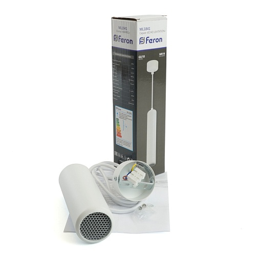Характеристики Светильник потолочный Feron ML1841 Barrel ECHO levitation MR16 35W, 230V, GU10, белый, с антибликовой сеточкой, на подвесе 1,7 м