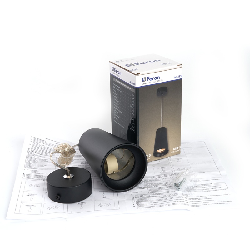 Характеристики Светильник потолочный Feron ML1838 Barrel BELL levitation на подвесе1,7 м ,MR16 35W 230V, черный