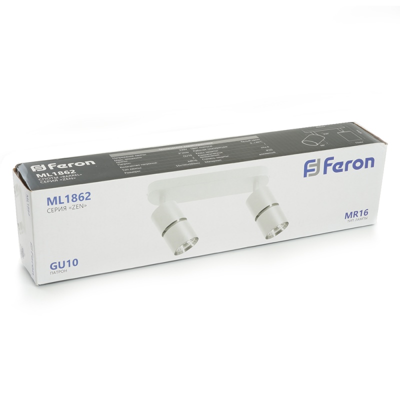 Характеристики Светильник Feron ML1862 ZEN настенно-потолочный под лампу GU10, белый, хром