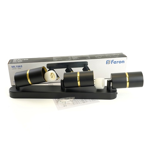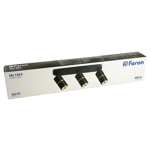 Характеристики Светильник Feron ML1863 ZEN настенно-потолочный под лампу GU10, чёрный, золото