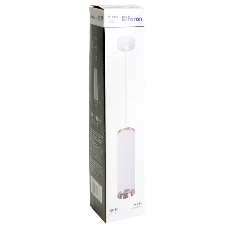 Характеристики Светильник потолочный Feron ML1908 Barrel GATSBY levitation на подвесе MR16 35W, 230V, белый, античное золото 55*200