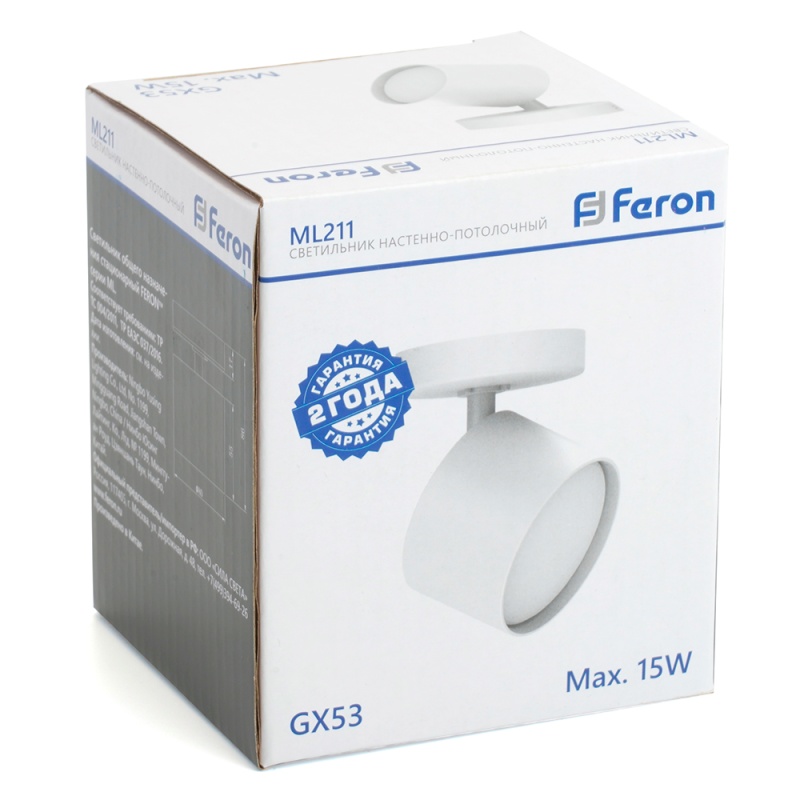 Характеристики Светильник Feron ML211 настенно-потолочный под лампу GX53, белый