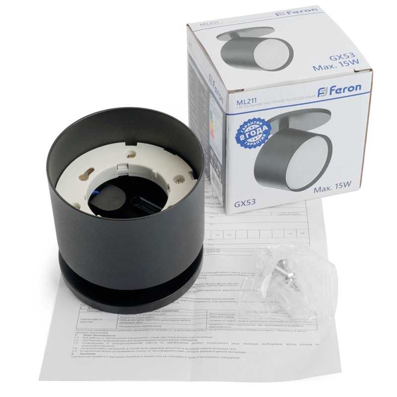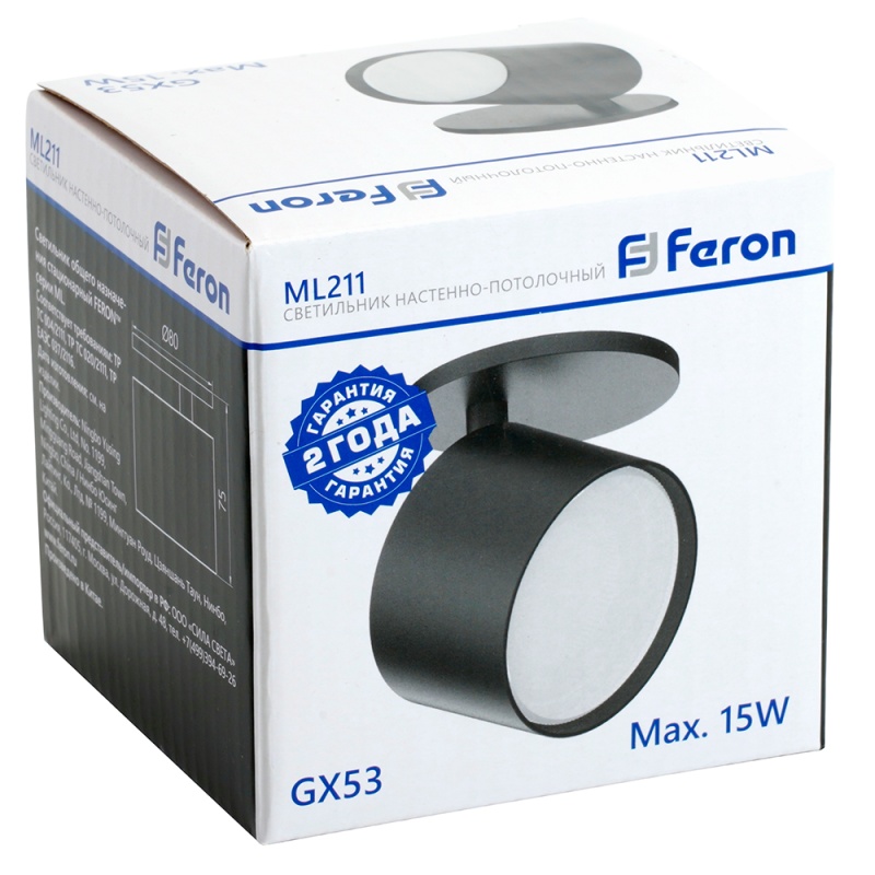 Характеристики Светильник Feron ML211 настенно-потолочный под лампу GX53, черный