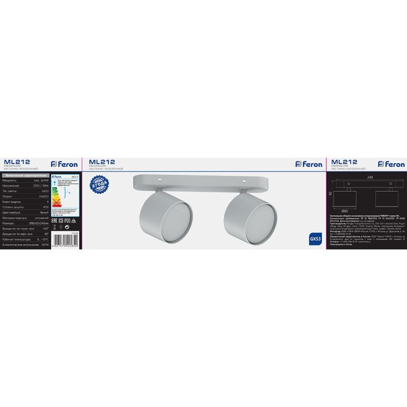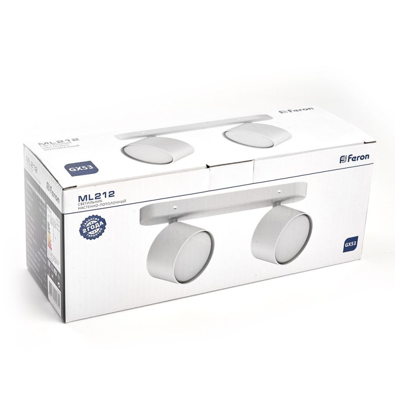 Характеристики Светильник Feron ML212 настенно-потолочный под лампу GX53, белый