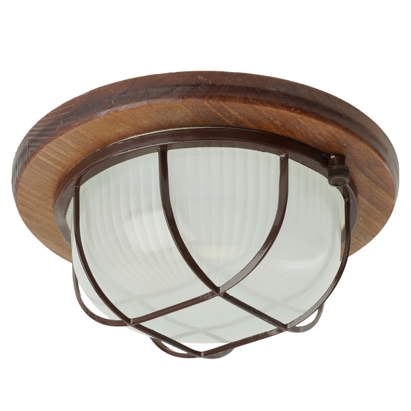 Светильник накладной IP54, 220V 60Вт Е27, дерево, орех, круг, с решеткой, НБО 03-60-022 11574