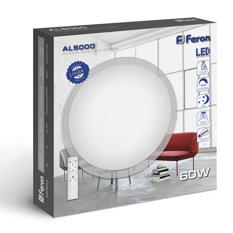 Характеристики Светильник накладной светодиодный FERON AL5000 28935