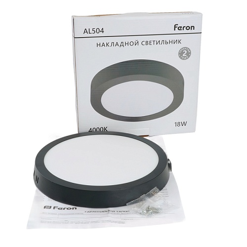 Характеристики Светодиодный светильник Feron AL504 накладной 18W 4000K черный
