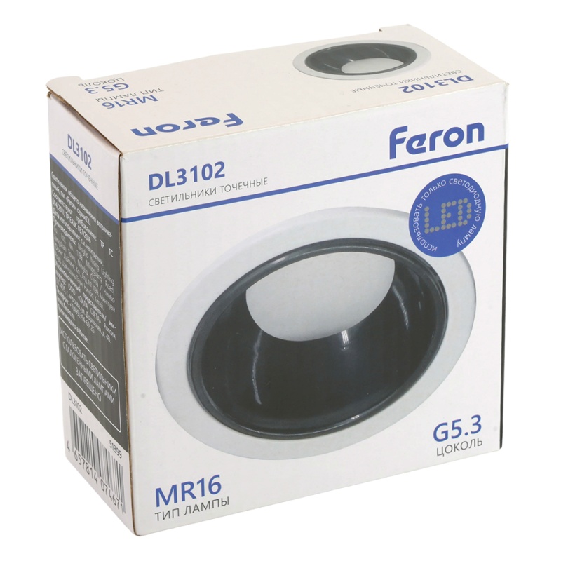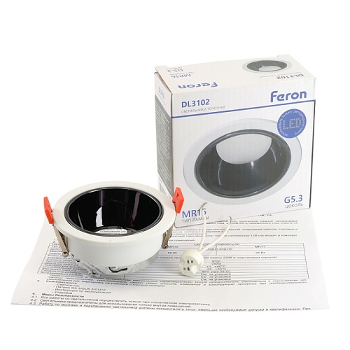 Характеристики Светильник встраиваемый Feron DL3102 потолочный MR16 G5.3 белый + черный хром