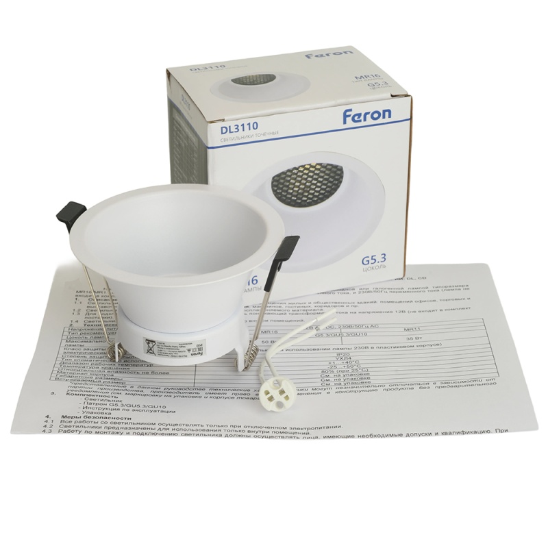 Отзывы о Светильник встраиваемый Feron DL3110 потолочный MR16 G5.3 белый