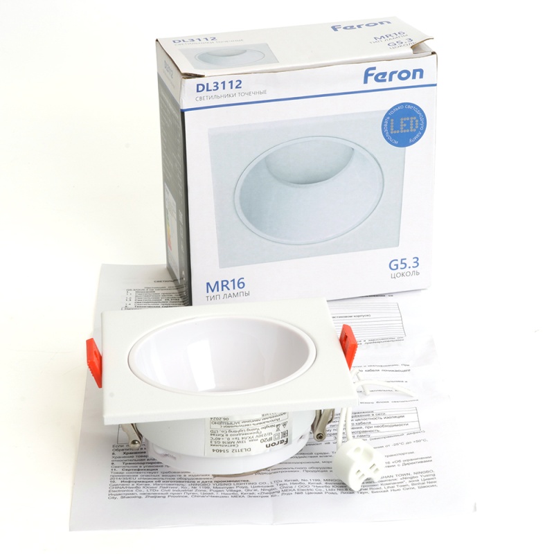 Отзывы о Светильник встраиваемый Feron DL3112 потолочный MR16 G5.3 белый