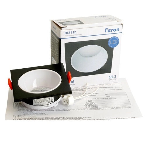 Отзывы о Светильник встраиваемый Feron DL3112 потолочный MR16 G5.3 черный + белый