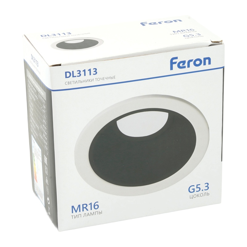Характеристики Светильник встраиваемый Feron DL3113 потолочный MR16 G5.3 белый + черный