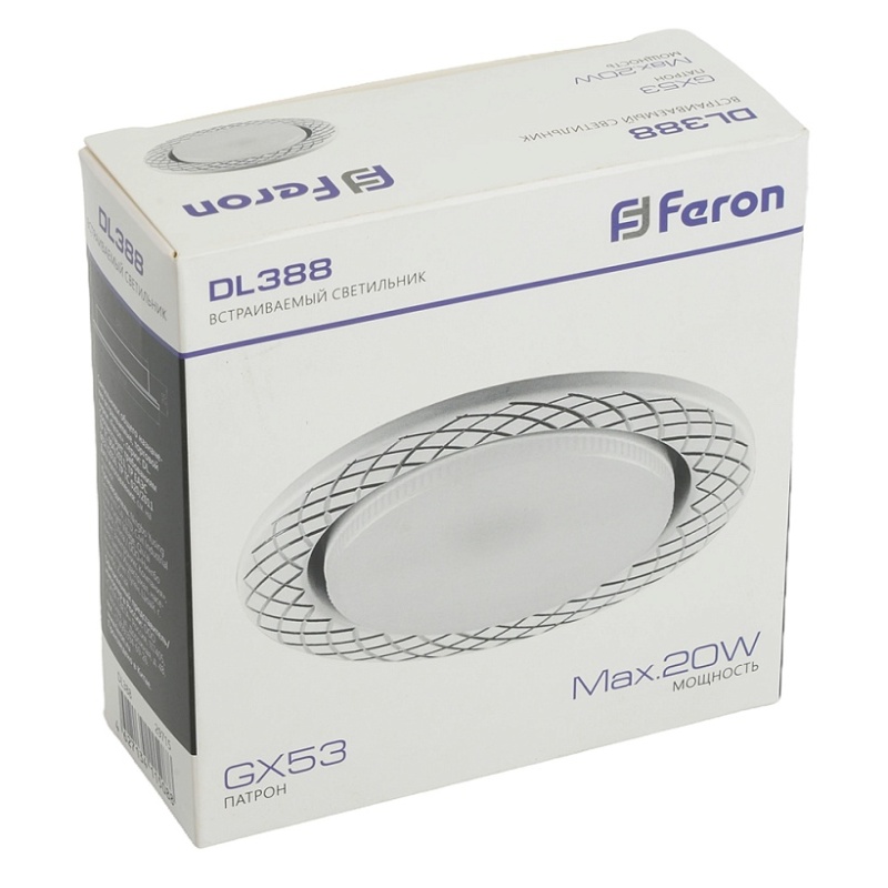 Характеристики Светильник встраиваемый Feron DL388 потолочный GX53 хром