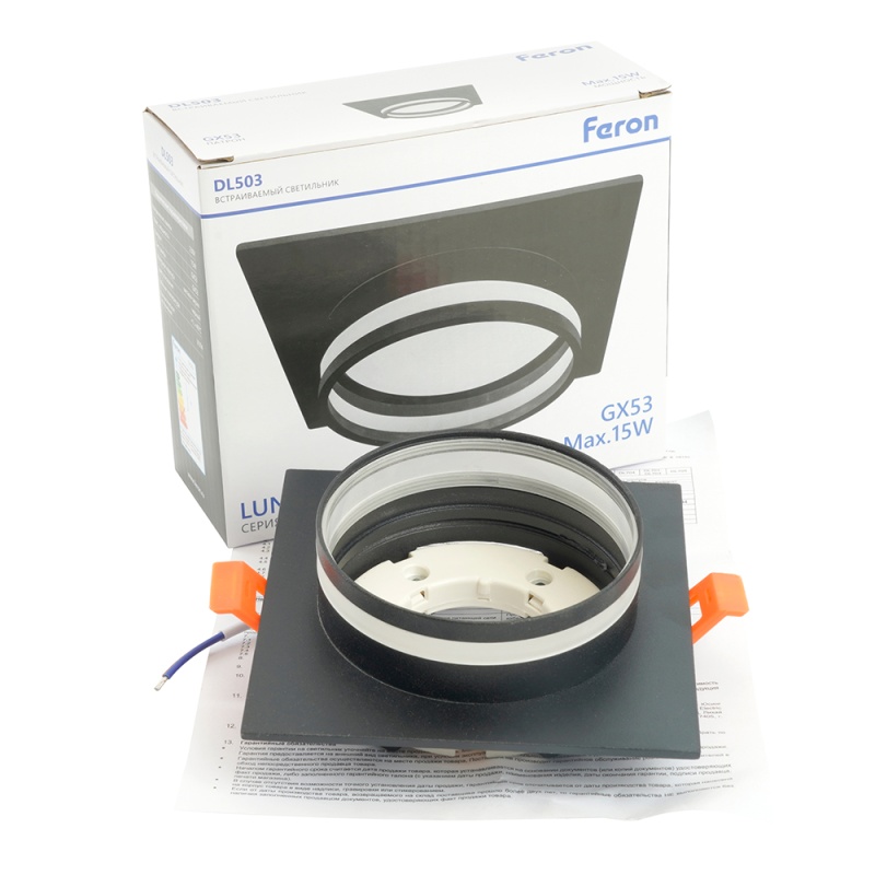 Характеристики Светильник встраиваемый Feron DL503 LUNA потолочный GX53 черный квадрат