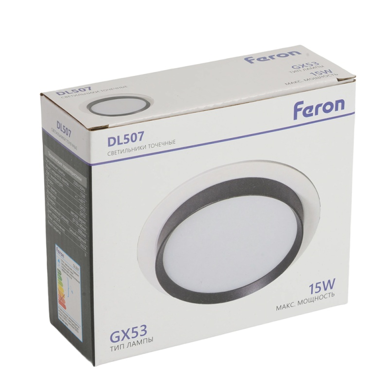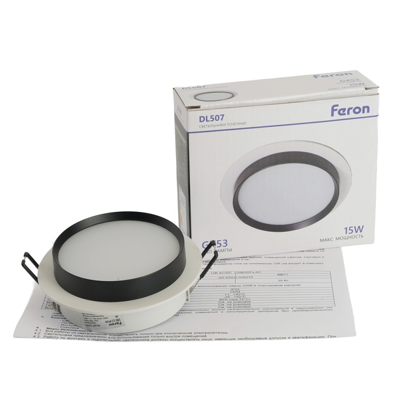 Характеристики Светильник встраиваемый Feron DL507 потолочный GX53 белый + черный круг