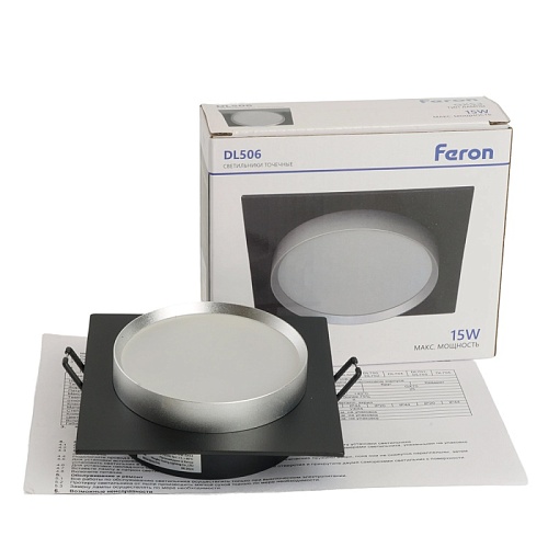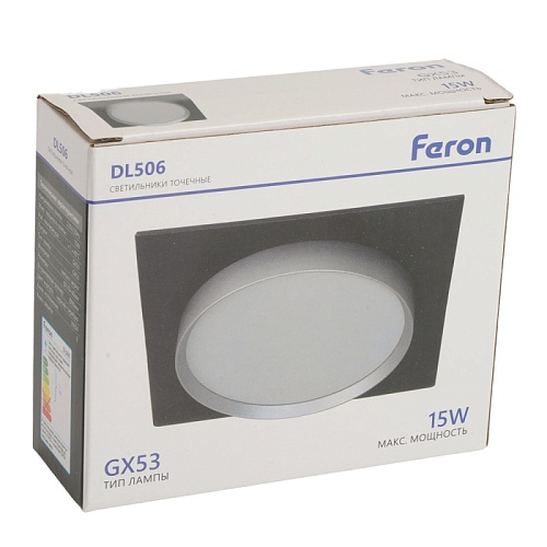 Характеристики Светильник встраиваемый Feron DL506 потолочный GX53 черный + серебро квадрат
