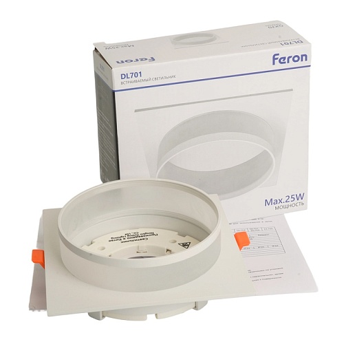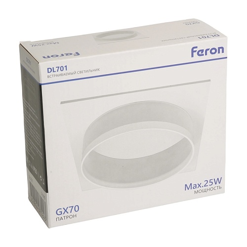 Характеристики Светильник встраиваемый Feron DL701 потолочный GX70 белый квадрат