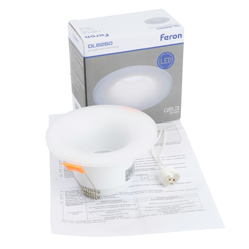 Отзывы о Светильник встраиваемый Feron DL8260 потолочный MR16 G5.3 матовый белый