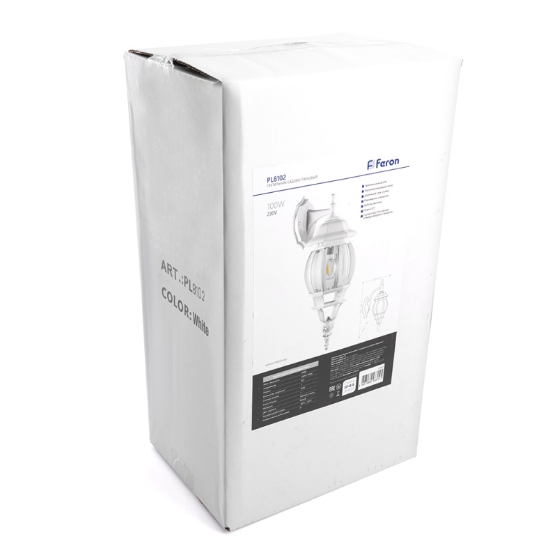 Характеристики Светильник садово-парковый Feron 8102/PL8102 восьмигранный на стену вниз 100W E27 230V, белый