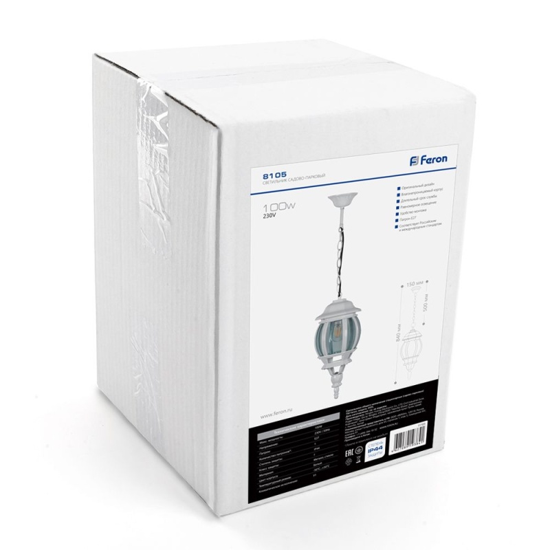 Светильник садово-парковый Feron 8105/PL8105 восьмигранный на цепочке 100W E27 230V, белый 11103