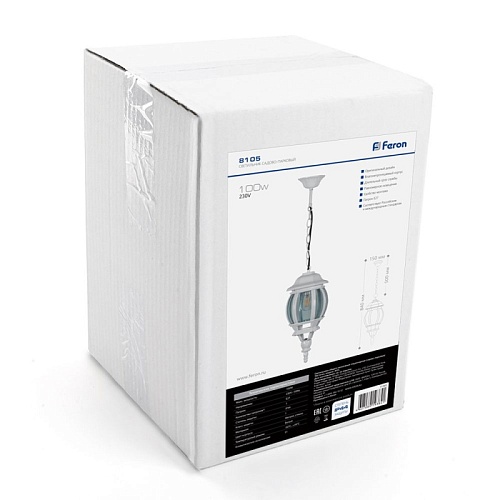 Характеристики Светильник садово-парковый Feron 8105/PL8105 восьмигранный на цепочке 100W E27 230V, белый
