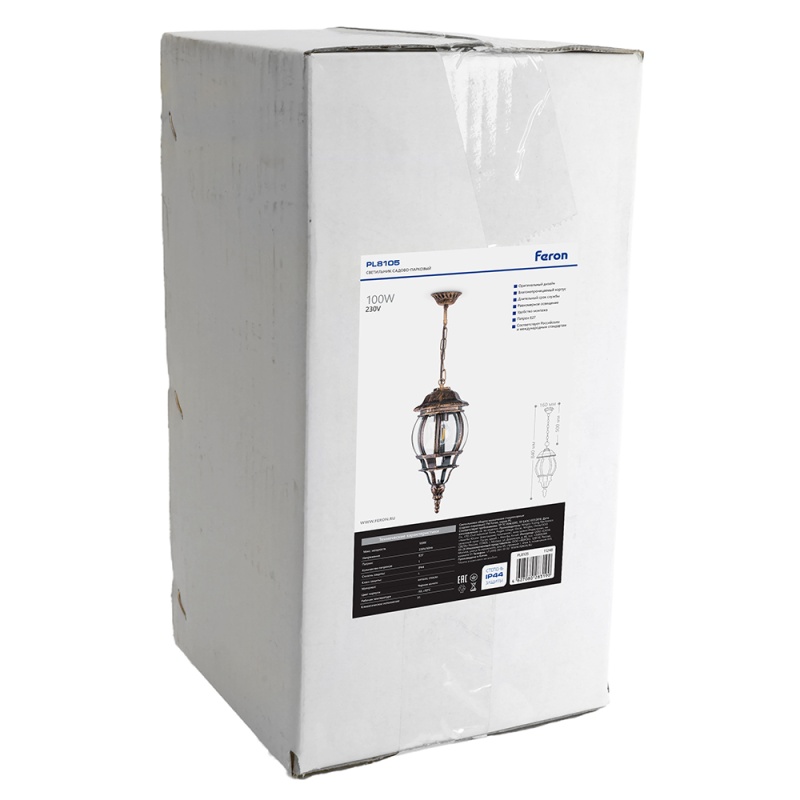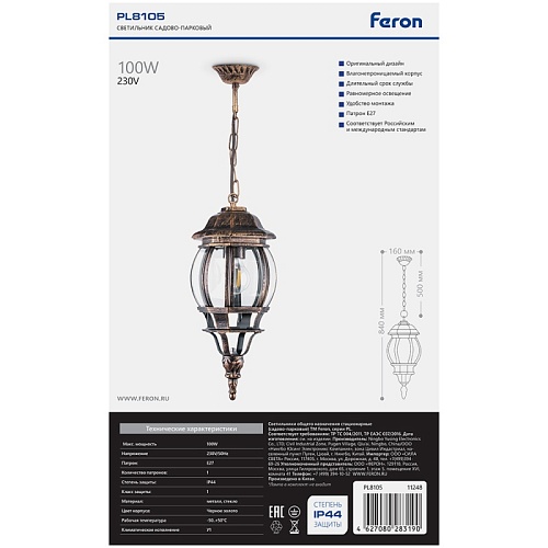 Характеристики Светильник садово-парковый Feron 8105/PL8105 восьмигранный на цепочке 100W E27 230V, черное золото