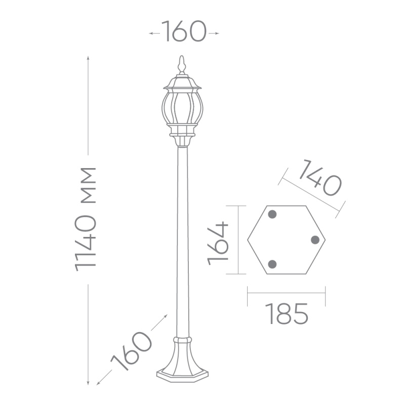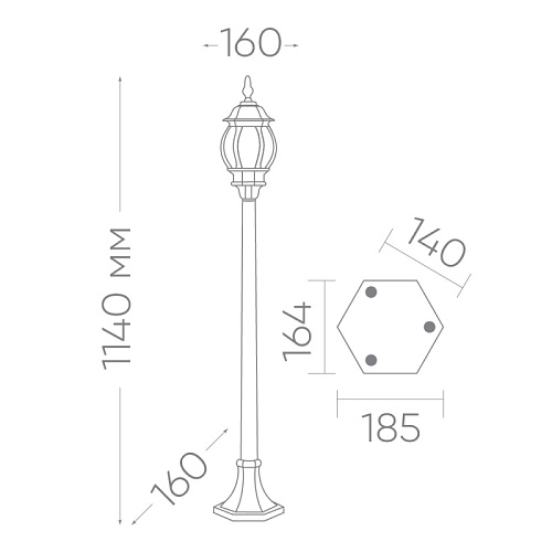 Светильник садово-парковый Feron НТУ 06-60-001 на постамент, 6-ти гранник 60W E27 230V, черный