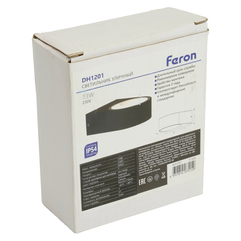 Характеристики Светильник садово-парковый Feron DH1201,на стену, GX53 230V, черный