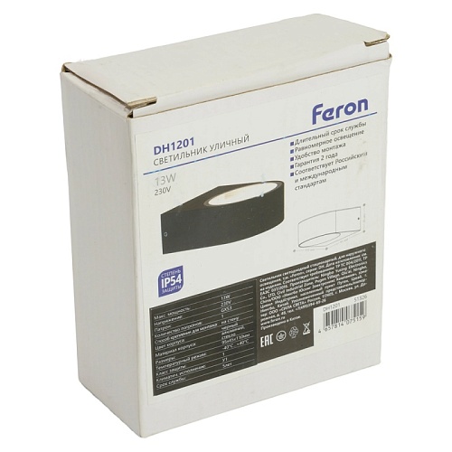 Светильник садово-парковый Feron DH1302, на стену вверх/вниз, E27 230V, черный