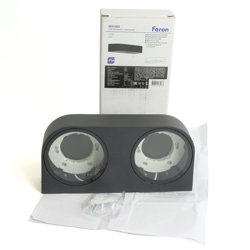 Светильник садово-парковый Feron.ONE DH015-P, на стену, 2*GU10 220-240V, черный пластик