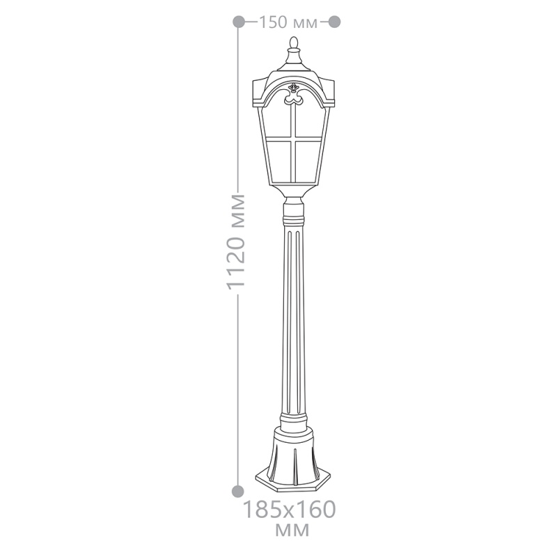 Характеристики Светильник садово-парковый Feron PL107 четырехгранный, столб 60W 230V E27, черное золото