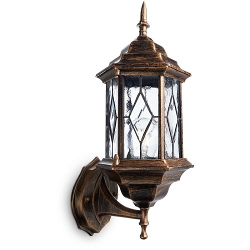 Светильник садово-парковый Feron PL121 шестигранный на стену вверх 60W E27 230V,черное золото 11343