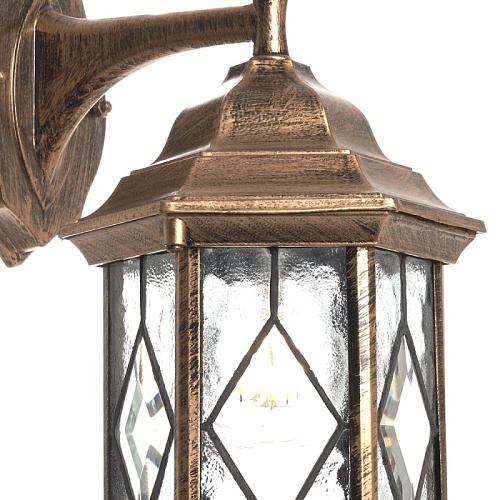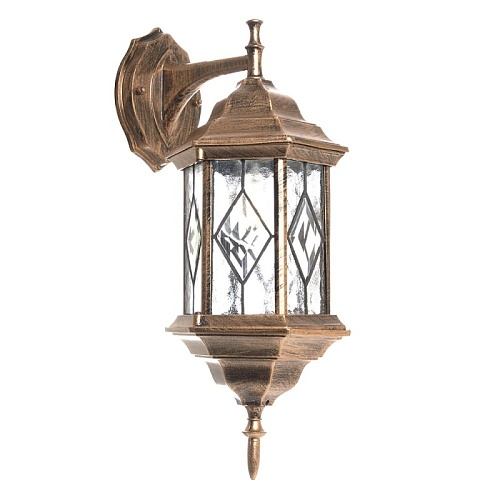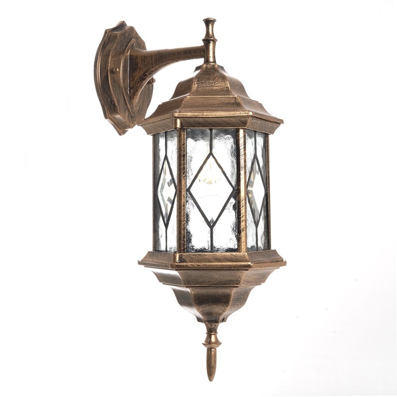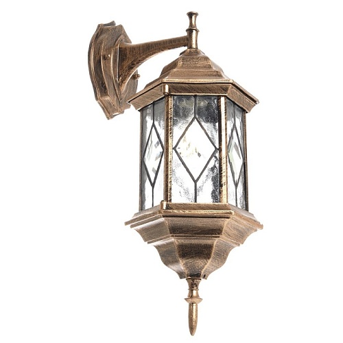 Светильник садово-парковый Feron PL122 шестигранный на стену вниз 60W E27 230V, черное золото 11344