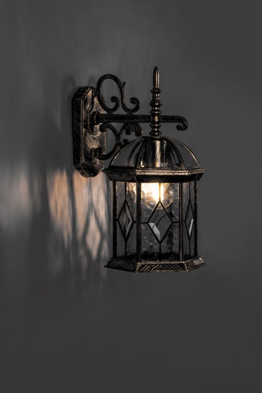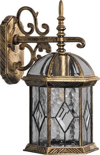 Светильник садово-парковый Feron PL131 шестигранный на стену вниз 60W E27 230V, черное золото 11335