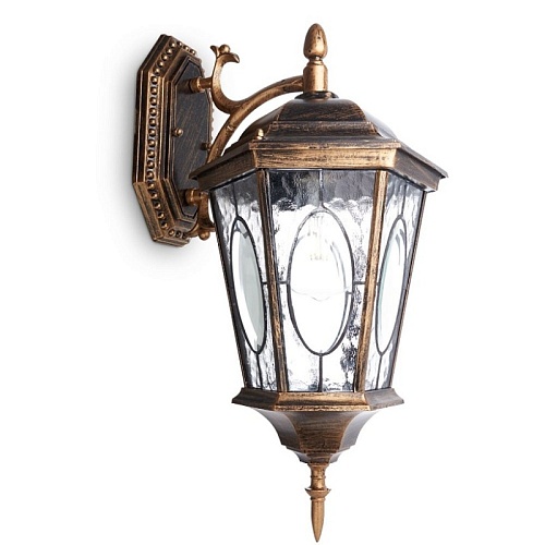 Светильник садово-парковый Feron PL151 шестигранный на стену вниз 60W E27 230V, черное золото 11320