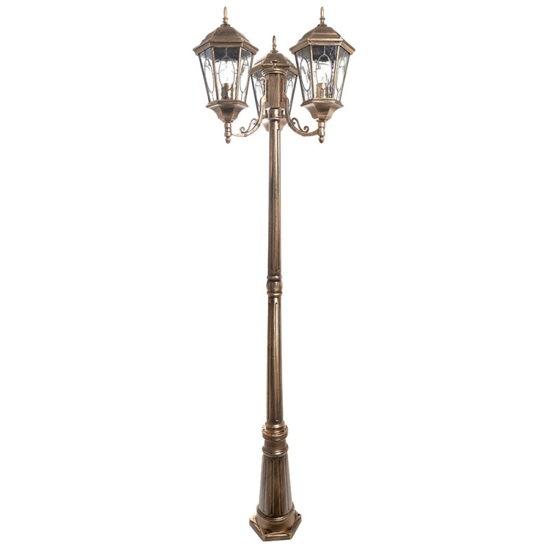 Светильник садово-парковый Feron PL158 шестигранный, столб 3*60W E27 230V, черное золото 11326