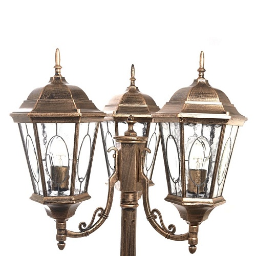 Характеристики Светильник садово-парковый Feron PL158 шестигранный, столб 3*60W E27 230V, черное золото
